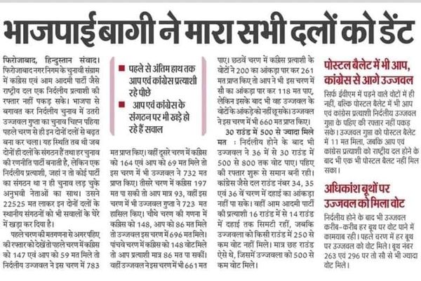 Ujjwal Gupta is a young dynamic political leader having contested an election recently as an Independent Candidate for Mayor in Firozabad Municipal Corporation, having secured around 23 Thousands Votes (total 8 percent of Votes Cast) She gained immense support of public. She has a vision of Young India which is devoid of corruption and Injustice.